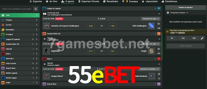A aposta 55ebet oferece aos jogadores a experiência mais conveniente de apostas em eSports!